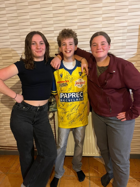 11 juillet Arrivée du retour du défi jumelage : Bravo à Louis Cette année c'est le jeune Louis Sakic 20 ans qui a relevé le défi. Il a parcouru à vélo les 617 km qui séparent Gonfreville Caillot de Saint Donat en 3 jours parti le 9 juillet de Normandie il est arrivé le 11 juillet en Auvergne en compagnie d'Anthony qui avait relevé le défi l'an dernier et qui l'a accompagné sur les derniers kilomètres et de cyclistes des communes voisines pour une arrivée de groupe vers 18h près de la statue du faucheur sous un beau soleil, des applaudissements et des félicitations, un accueil chaleureux des Donatois et la fierté de sa grand mère Béatrice, suivi d'un moment convivial en compagnie des sportifs. Le comité de jumelage de Saint Donat lui a offert un bouquet de fleurs et pour trophée un cube en pierre de Volvic gravée au nom du défi. Oeuvre des Ateliers Thierry Courtadon qui avaient sculpté la statue du faucheur.