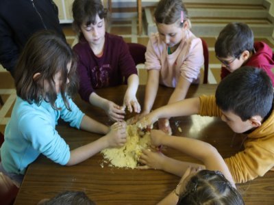 SEMAINE DU GOUT ATELIER CULINAIRE AU RESTAURANT SCOLAIRE 14 octobre Dans le cadre de la semaine du goût au RPI St-Donat/ Picherande un atelier culinaire a été animé au restaurant scolaire de Picherande par le chef Thomas Perron Toque d'Auvergne. Un atelier pain de maïs pour les plus petits, un atelier sablés pour les moyens et un atelier pâtes pour les plus grands. Tous les enfants ont participé avec grand plaisir dans les diverses tâches à accomplir et enrichi leurs connaissances sur les ingrédients utilisés.